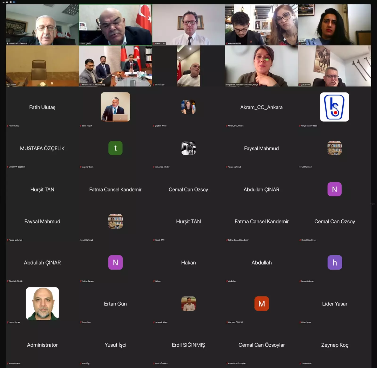 Konya Sanayi Odası Başkanı Mustafa Büyükeğen’in ev sahipliğinde online olarak gerçekleştirilen seminere, Bangladeş Halk Cumhuriyeti Türkiye Büyükelçisi M. Amanul Haq, Bangladeş Halk Cumhuriyeti Yatırım Geliştirme Kurulu Yönetim Kurulu Üyesi ve Yatırım Teşvik Birimi Başkanı Nahlan Rahman Rochi, Bangladeş Konya Fahri Konsolosu Deniz Bulkur ile Konyalı sanayiciler ve iş yeri temsilcileri katıldı.