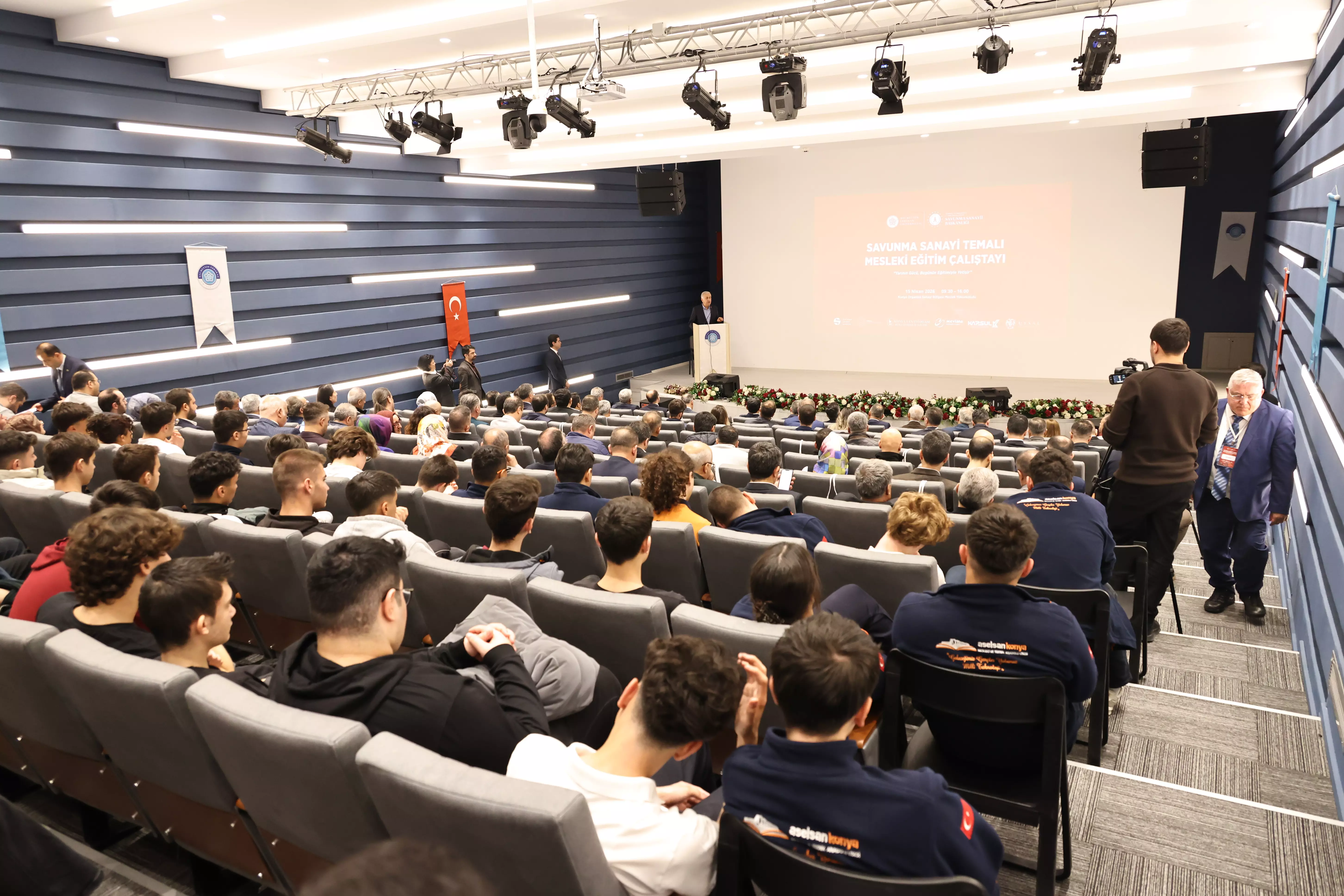 Türk savunma sanayini daha ileri taşıyacak insan kaynağı ve mesleki eğitimin tüm yönleriyle ele alındığı çalıştay, Savunma Sanayii Başkan Yardımcısı Prof. Dr. Hakan Karataş, Cumhurbaşkanlığı Denetleme Kurulu Denetçisi Mehmet Salih Canbal, Konya Sanayi Odası Başkanı Mustafa Büyükeğen, NEÜ Rektör Yardımcısı Prof. Dr. Hidayet Oğuz, MEVKA Genel Sekreteri İhsan Bostancı, Konya İl Milli Eğitim Müdürü Murat Yiğit ile çok sayıda sektör temsilcisi ve öğrencilerin katılımıyla gerçekleştirildi.