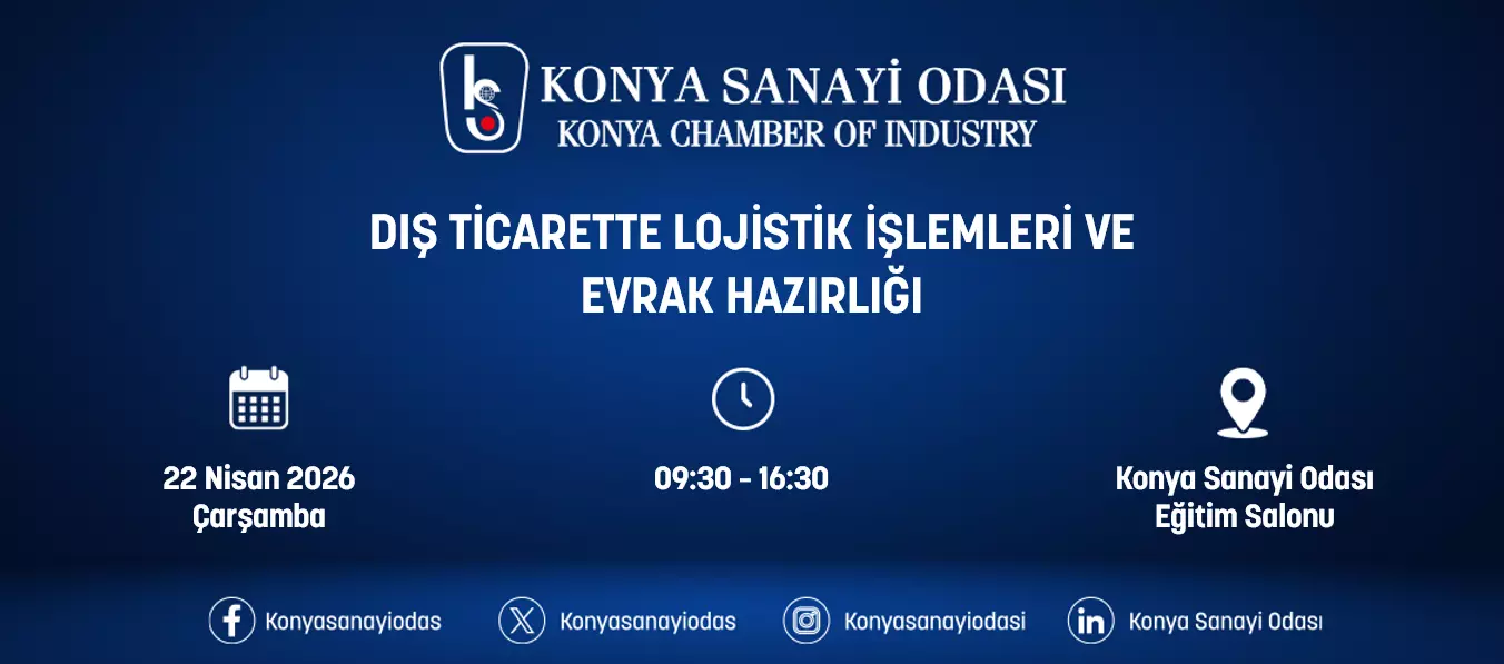 Konya Sanayi Odası, 22 Nisan 2026 Çarşamba saat 09.30-16.30’de “TS EN ISO 50001:2018 Enerji Yönetimi Sistemi” eğitimi düzenleyecektir. Eğitim herkes için ücretsizdir.