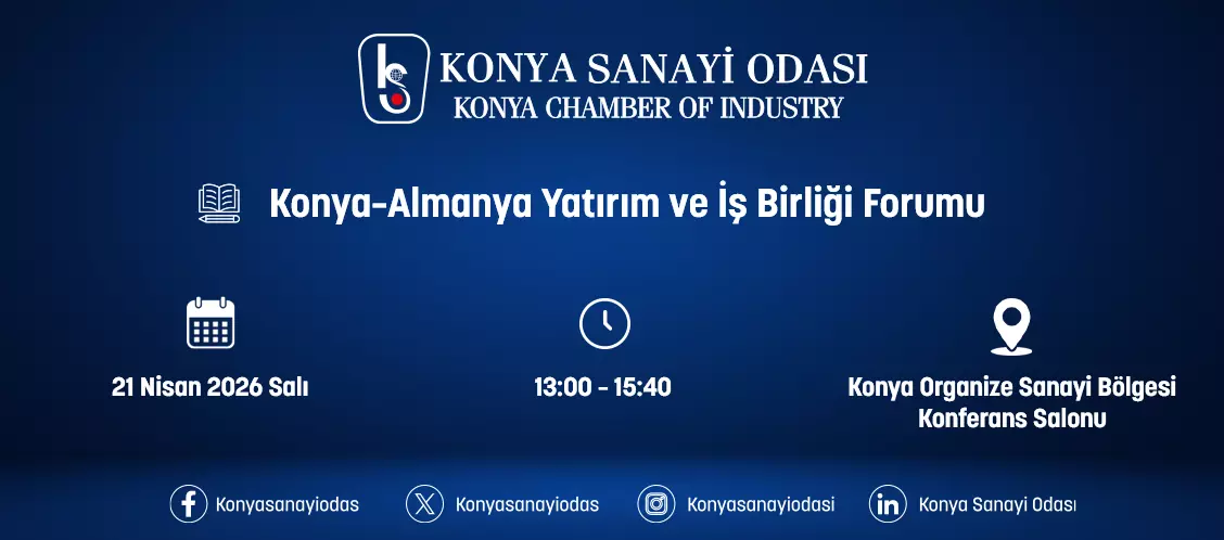 Konya’nın ihracatını geliştirmek ve sanayicilerimizin yeni pazarlara erişimini desteklemek amacıyla Odamız tarafından başlatılan Konya İhracat Seferberliği kapsamında düzenlenecek olan Konya–Almanya Yatırım ve İş Birliği Forumu ‘na sizleri davet etmekten memnuniyet duyarız.