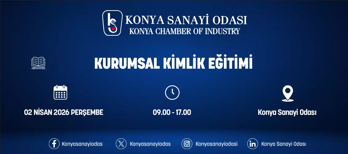 Konya Sanayi Odası, 02 Nisan 2026 Perşembe, saat 09.00-17.00’de “Kurumsal Kimlik” eğitimi düzenleyecektir. Eğitim herkes için ücretsizdir.