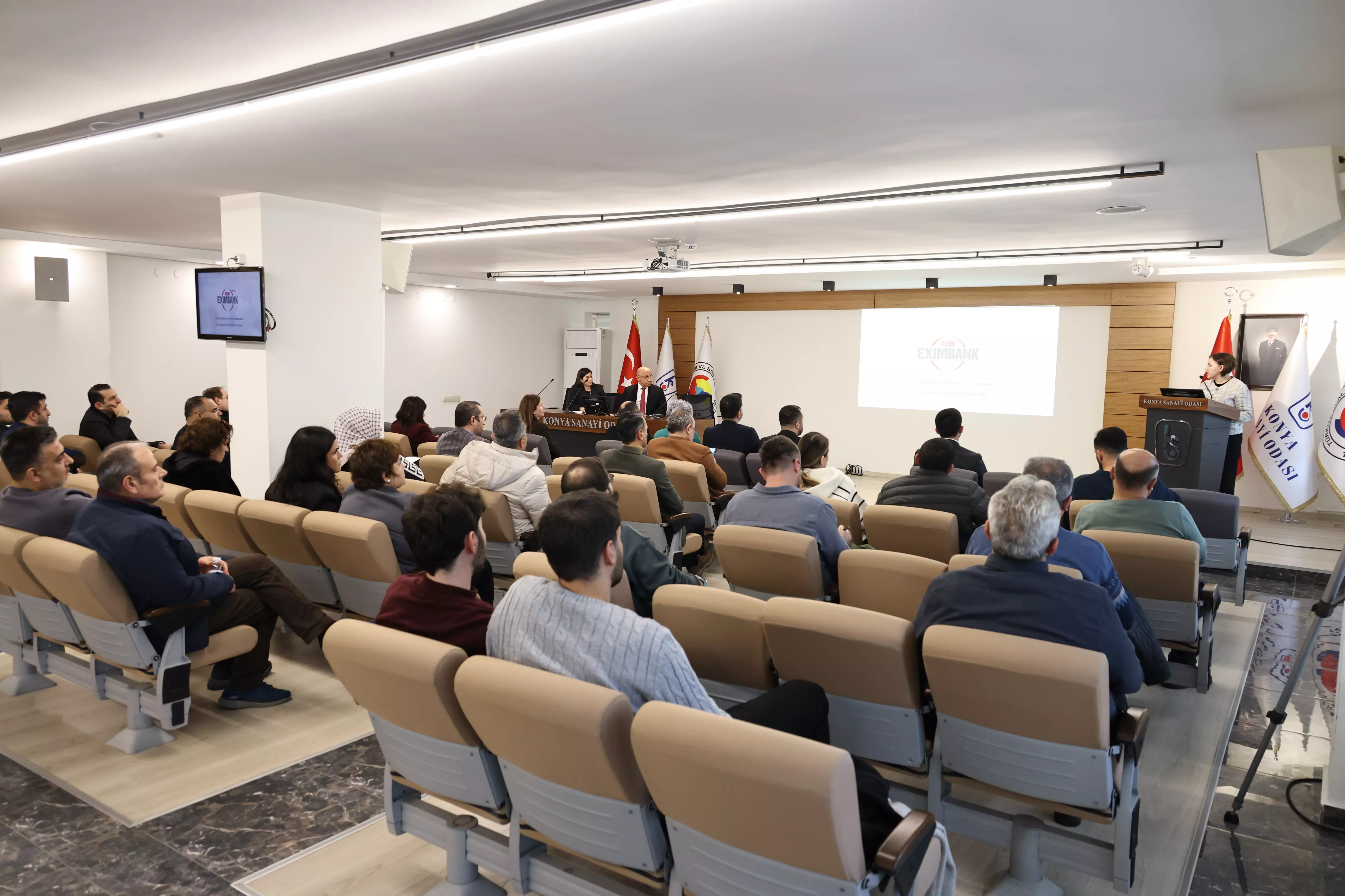 Konya Sanayi Odası tarafından, Eximbank Alıcı Kredileri ve Dış Ticaret Ürünleri Bilgilendirme Toplantısı gerçekleştirildi. Sanayicilerin ve iş yeri temsilcilerinin yoğun katılımıyla gerçekleştirilen toplantıda, Türk Eximbank Proje Finansmanı Direktörü Hatice Ürkmez ve Türk Eximbank Proje Dış Ticaret Direktörü Fehmi Tutulmaz tarafından, Eximbank’ın alıcı kredileri ve dış ticaret ürünleri hakkında bilgiler verildi.
